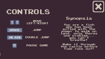 This game is a short demo, playing as a fish who has been given the gift to walk on land - although you can't breathe!